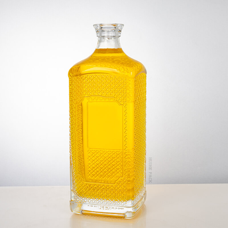 1000 ml Bouteille d'alcool en verre carré en relief pour étiquette