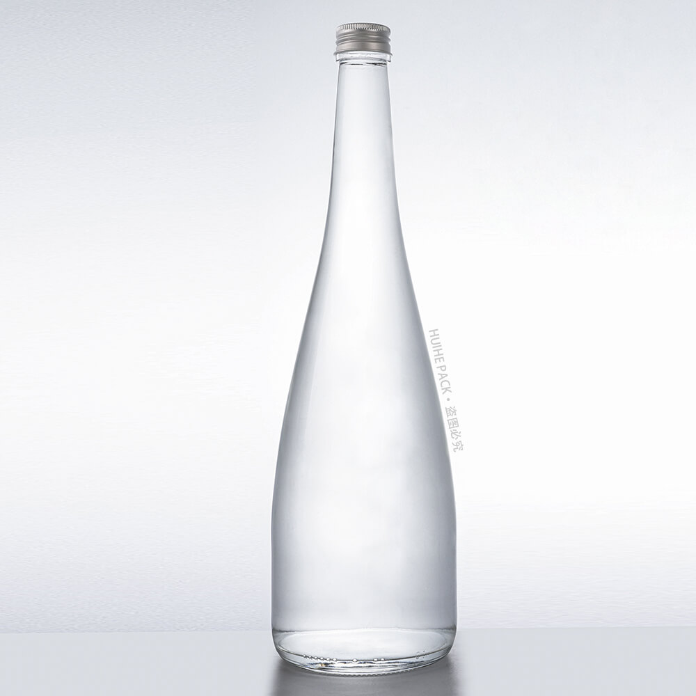 Cette bouteille d'eau en verre de 900 ml présente une forme effilée et allongée élégante : elle mesure 322 mm de haut avec un diamètre de base de 93 mm, présentant des courbes douces et fluides et une finition cristalline qui semble moderne et luxueuse, parfaite pour les marques d'eau minérale haut de gamme qui cherchent à faire une impression raffinée.