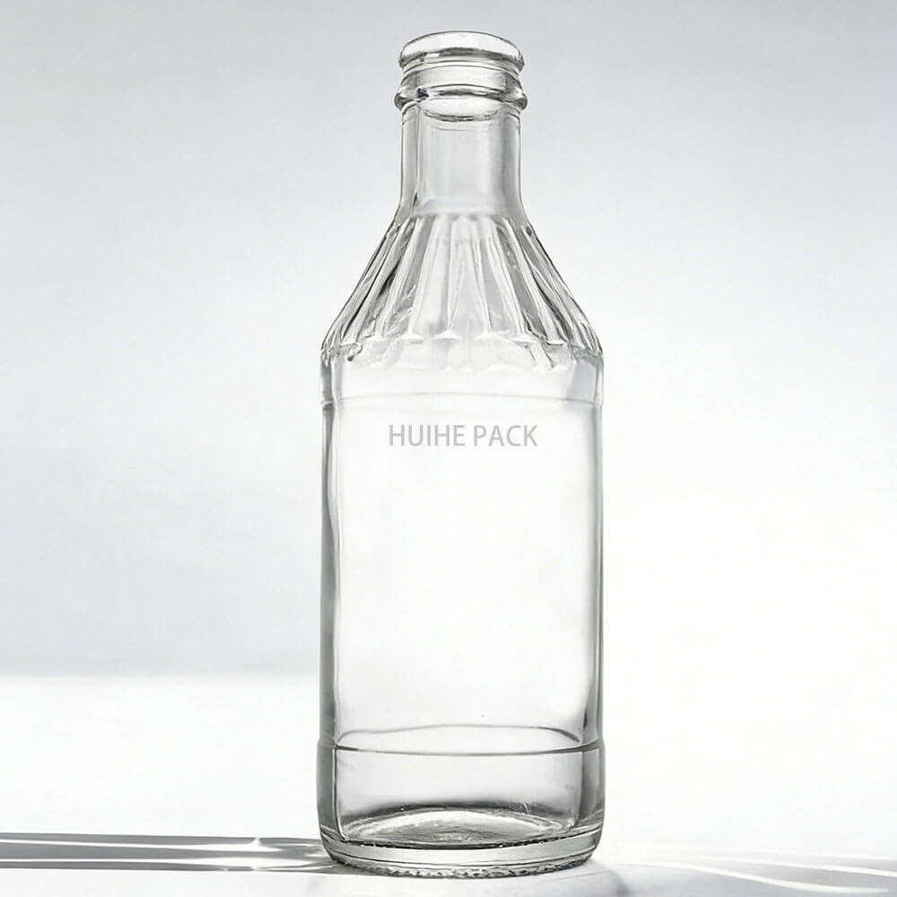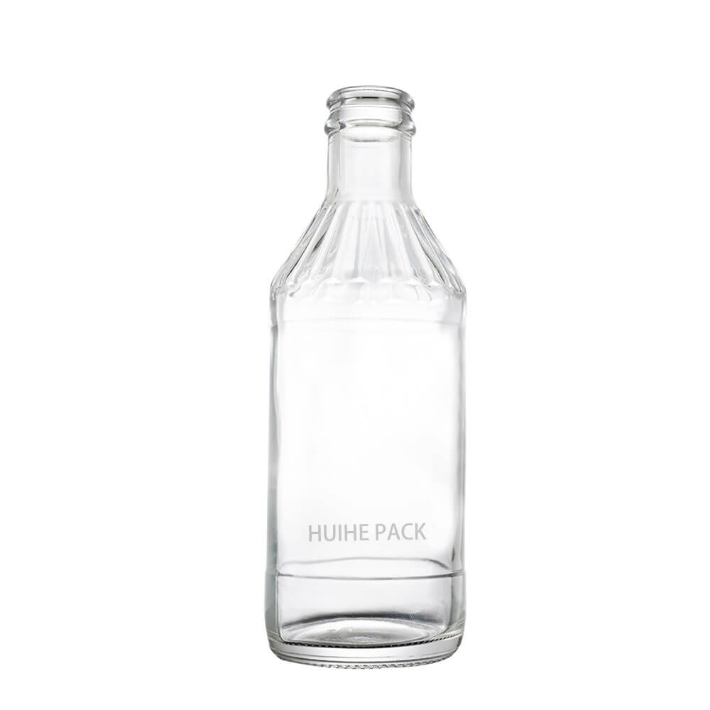 Cette bouteille d'eau en verre haut de gamme a une capacité de 258 ml, mesure 162 mm de haut et 54 mm de largeur. Il présente une silhouette structurée et classique : un col fileté court se jette dans une épaule légèrement inclinée, qui se connecte à un corps rectangulaire élégant qui se rétrécit légèrement vers une base stable. Le verre transparent à haute transparence met en valeur la pureté du contenu, ce qui en fait un choix raffiné pour les marques d'eau minérale haut de gamme et les gammes de boissons haut de gamme.