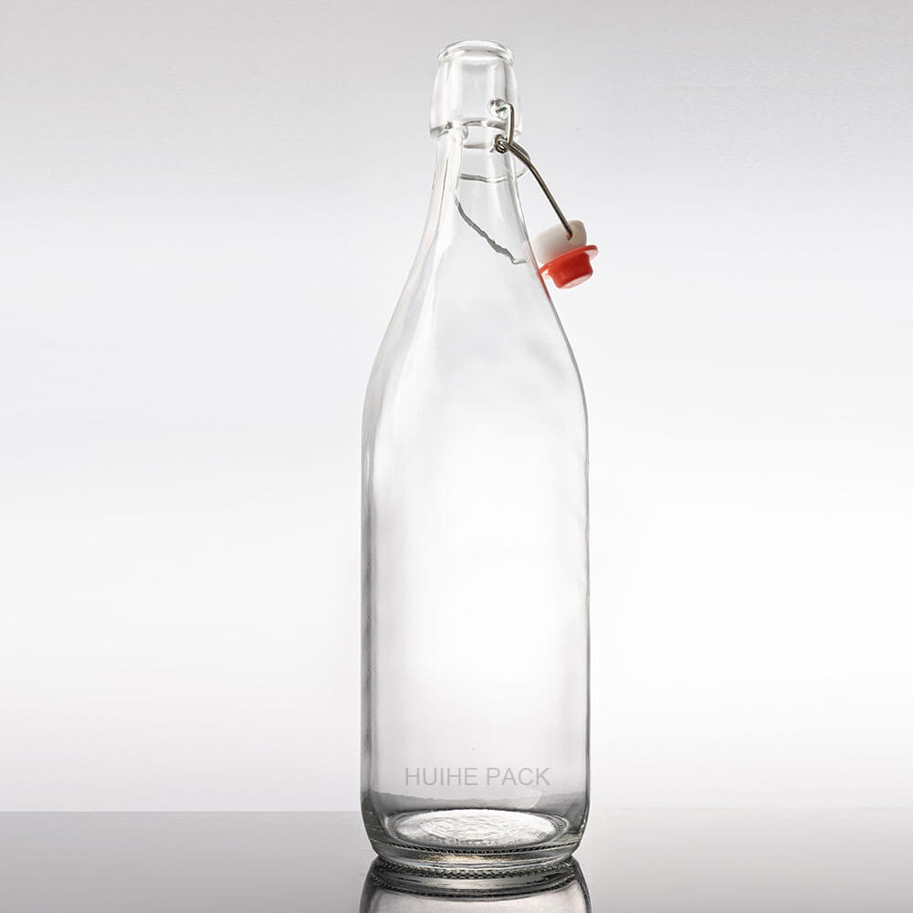 Cette bouteille d'eau en verre haut de gamme a une capacité de 1 000 ml, mesure 302 mm de haut et 81 mm de largeur. Il présente une silhouette élégante et incurvée : un col étroit avec un couvercle à clip s'élargit doucement en un corps arrondi et plein qui se rétrécit doucement jusqu'à une base stable. Son verre cristallin met en valeur la pureté du contenu, ce qui en fait un choix raffiné pour les marques d'eau minérale haut de gamme et les gammes de boissons haut de gamme.