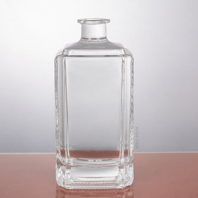 La bouteille dispose de crêtes verticales subtiles le long des bords, ajoutant de la texture et de la profondeur à sa surface autrement lisse. Ces crêtes améliorent non seulement l'attrait visuel, mais offrent également une meilleure adhérence. Le cou est court et soigneusement intégré dans le haut du corps rectangulaire, en maintenant le look rationalisé global. Si vous êtes à la recherche de 'bouteilles d'alcool en verre élégantes ' pour élever votre marque, ce design est un ajustement parfait.