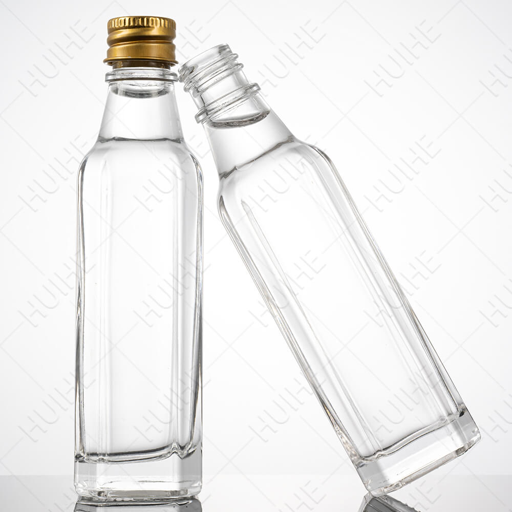 Cette mini bouteille d'alcool en verre de 50 ml de Huihe présente une silhouette rectangulaire élégante avec une finition transparente et un col à vis, idéale pour les échantillons de spiritueux, les dégustations haut de gamme ou les initiatives promotionnelles, offrant une visibilité claire du produit et une image de marque sophistiquée. Fabriqué à partir de verre de haute qualité, il est soumis à une inspection à 100 % pour garantir une qualité stable, aucune casse et une étanchéité sans fuite.