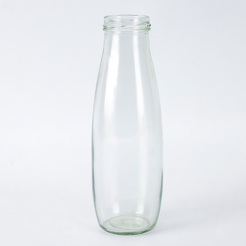 Cette bouteille de produits laitiers en verre présente une silhouette élancée et incurvée : un col fileté étroit se jette dans un corps légèrement effilé qui s'élargit légèrement à la base, associé à un verre transparent qui affiche clairement le contenu. Il convient à divers produits laitiers et boissons.
