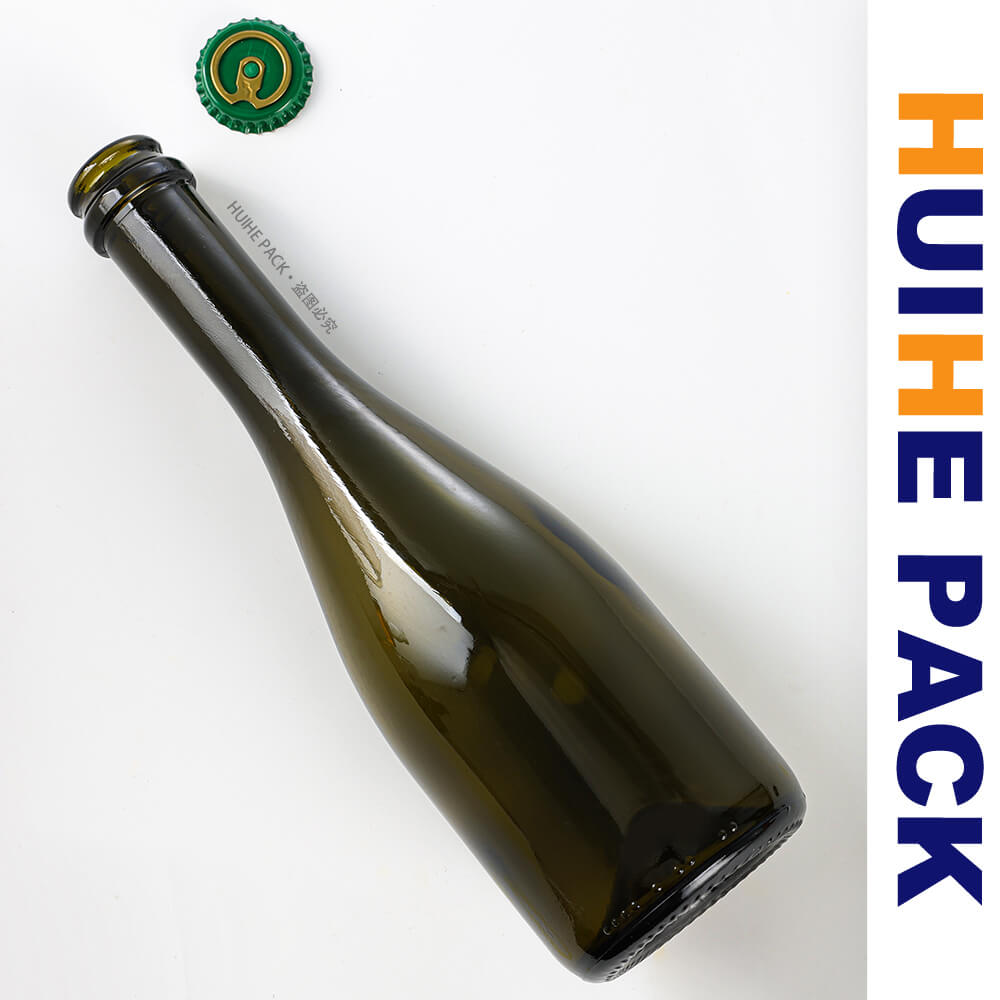 Bouteille de cidre en verre à ampoule incurvée vert foncé de 750 ml avec bouchon couronne